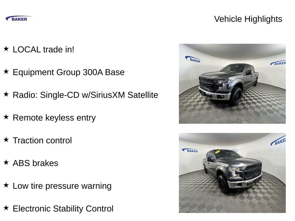 Magnetic Metallic 2015 Ford F-150 XLT 4WD 6-Speed Automatic Electronic 3.5L V6 Flex Fuel Ti-VCT LOCAL trade in!, F-150 XLT, 3.5L V6 Flex Fuel Ti-VCT, 6-Speed Automatic Electronic, 4WD, Magnetic Metallic, Medium Earth Gray w/Vinyl 40/20/40 Front Seat, 3.73 Axle Ratio, ABS brakes, Compass, Electronic Stability Control, Equipment Group 300A Base, GVWR: 2,880 kg (6,350 lb) Payload Package, Illuminated entry, Low tire pressure warning, Radio: Single-CD w/SiriusXM Satellite, Remote keyless entry, SYNC Voice Activated Connectivity System, Traction control, Wheels: 17 Silver Painted Aluminum.CALL US TODAY 6168373800. Recent Arrival! Odometer is 20183 miles below market average!Awards:* NACTOY 2015 North American Truck of the Year * Green Car Journal 2015 Green Car Technology Award * 2015 KBB.com Brand Image AwardsBased on 2017 EPA mileage ratings. Use for comparison purposes only. Your mileage will vary depending on how you drive and maintain your vehicle, driving conditions and other factors.